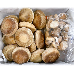 水分付着によるシイタケの劣化を防ぐための、防湿ギフト箱を使用しております。